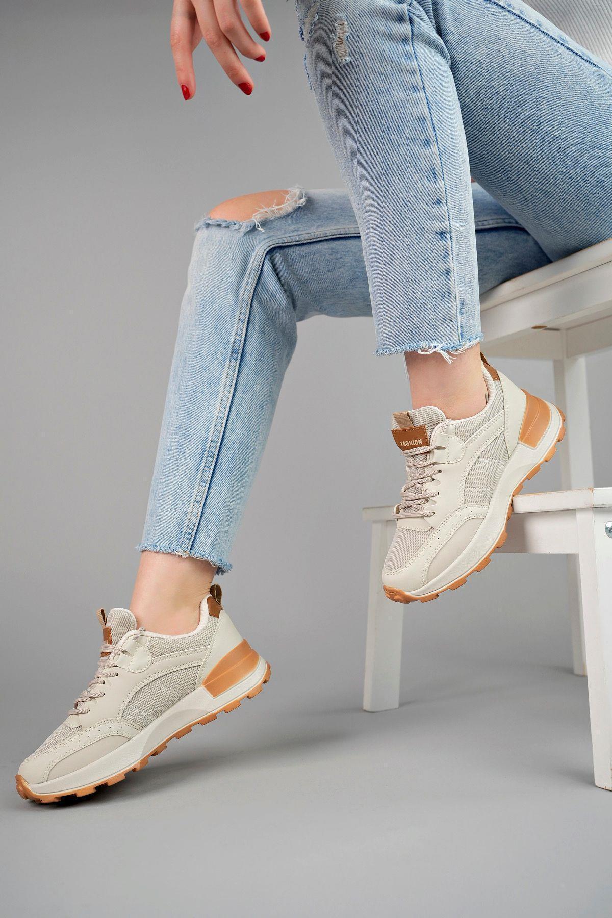 حذاء رياضي نسائي صيفي خفيف الوزن ذو نعل بولي بلون البشرة