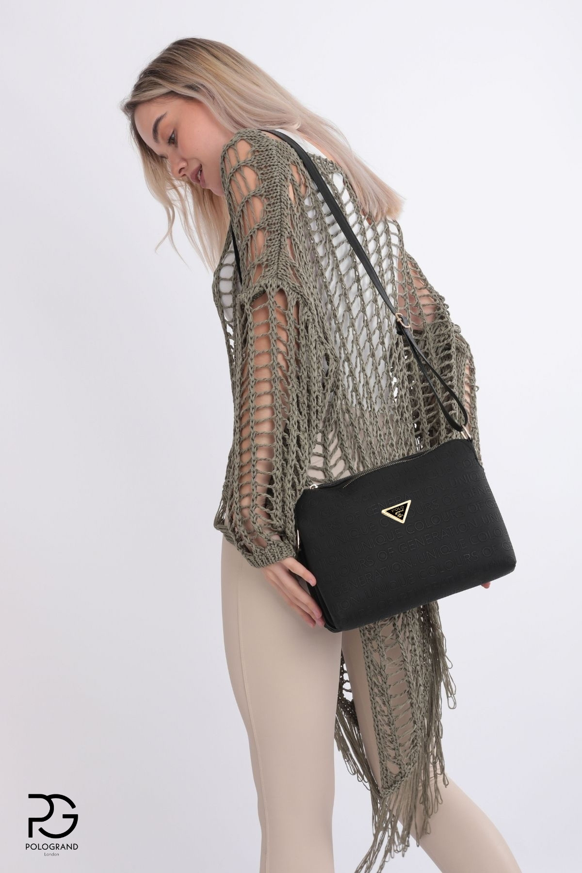 حقيبة كتف فاخرة من الجلد الناعم بثلاثة أقسام، هدية مميزة لعيد الحب، معبأة في علبة هدايا.