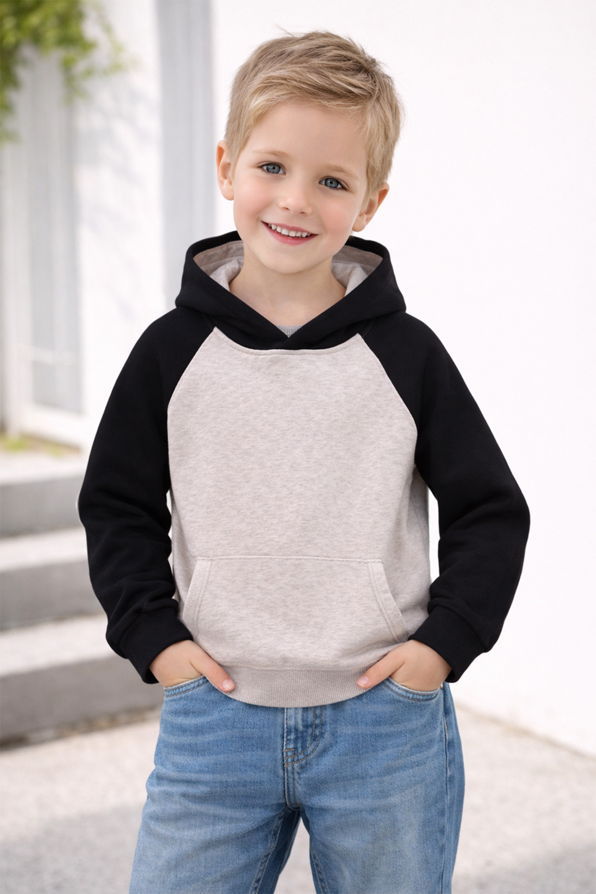 سويت شيرت للأطفال بغطاء رأس وأكمام راجلان